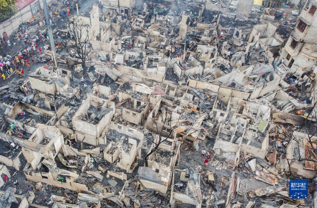 这是2月19日在菲律宾奎松拍摄的被烧毁的房屋(无人机照片)。