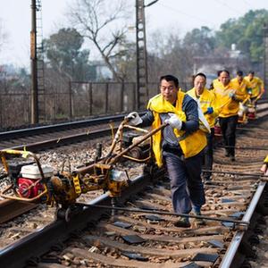2月19日,在沪昆铁路娄底至湘潭东区间,工人在移动螺栓松紧机。