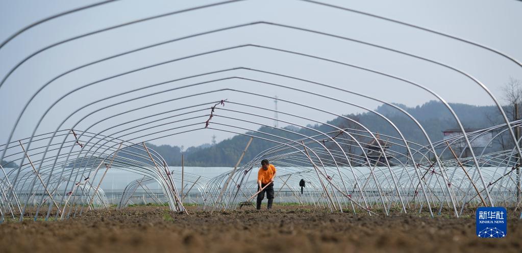 2月19日,农民在湖南省怀化市通道侗族自治县万佛山镇杏花村的西瓜种植基地疏松土壤。