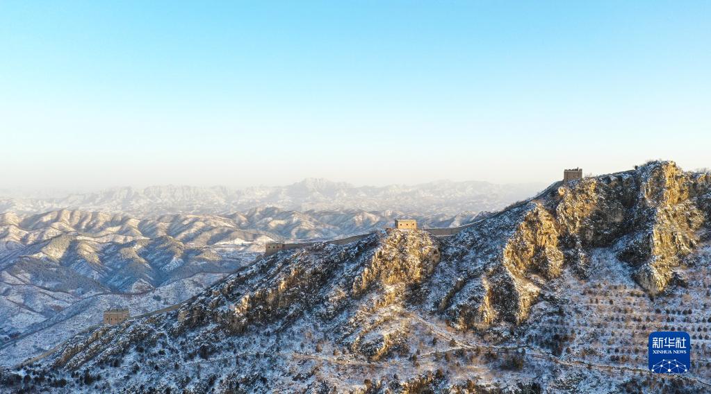 近日,北京市密云区古北口镇迎来一场降雪。矗立在高高山脊之上的司马台长城遇上皑皑白雪,犹如一幅水墨画卷,蔚为壮观。