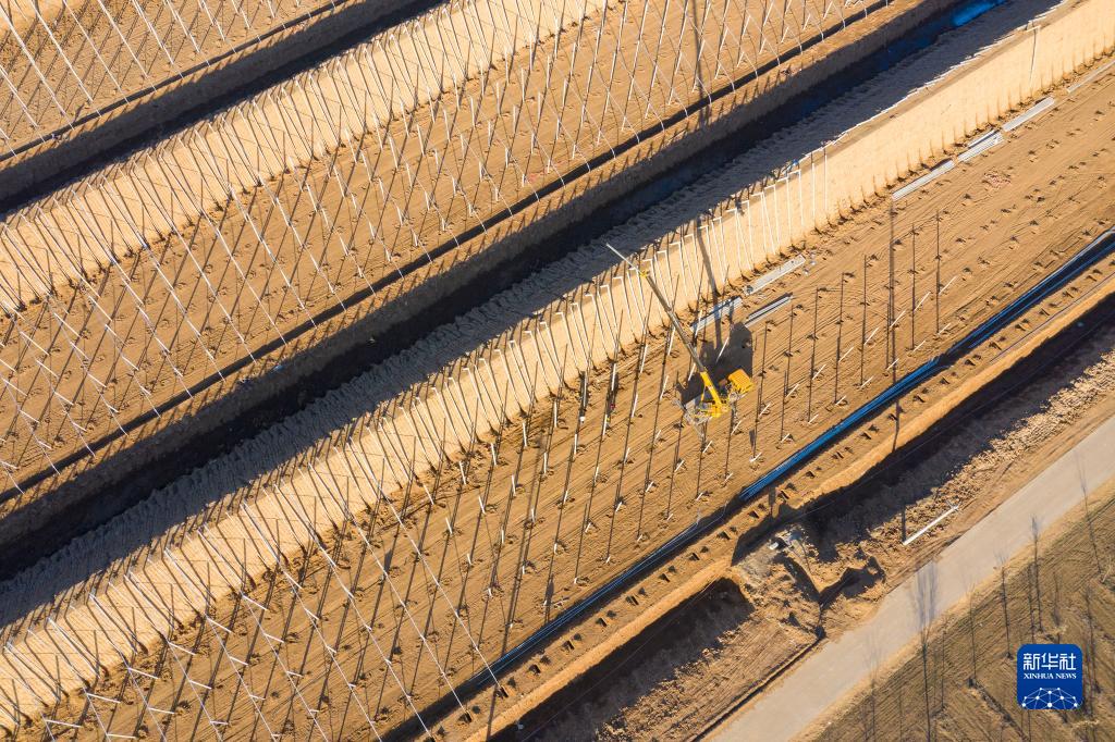 2月19日,山东省东营市广饶县稻庄镇高效生态农业示范园项目的设施蔬菜大棚正加紧建设(无人机照片)。
