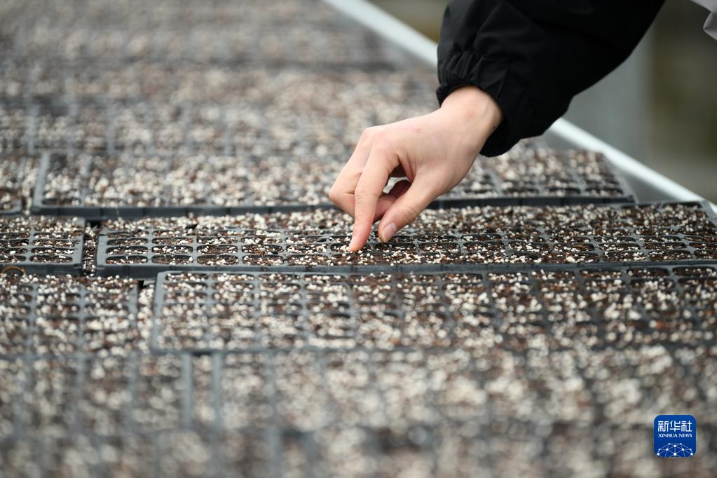 2月19日,技术人员在贵州省遵义市辣椒智慧产业园辣椒育苗智能大棚工作。