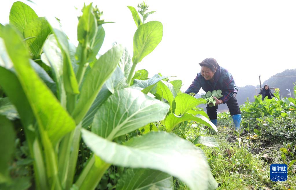 2月20日,湖南省衡阳市衡山县开云镇世上村村民在地里采收甜菜心。