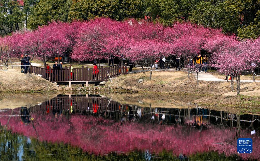 2月20日,游客在安徽黄山市歙县练江牧场赏梅。