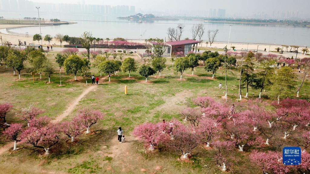 2月20日,游客在位于湖南省长沙市长沙县的湖南松雅湖国家湿地公园游玩、赏花(无人机照片)。