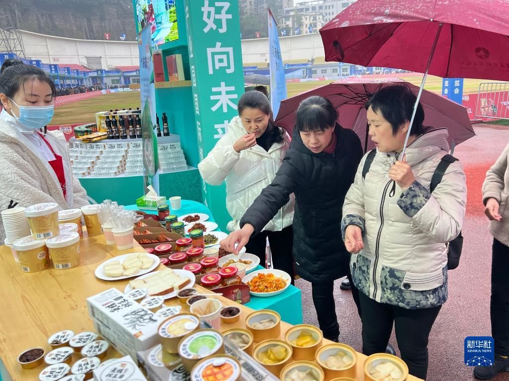 2月20日,在第五届中国重庆·涪陵榨菜产业国际博览会现场,观众在选购涪陵榨菜产品。