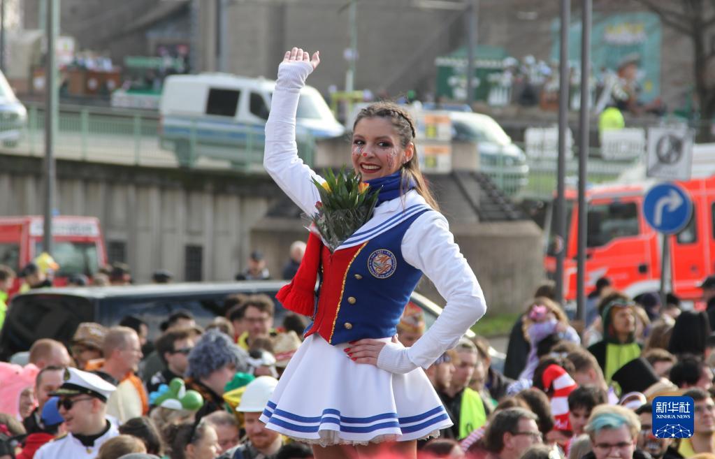 2月20日,在德国科隆,狂欢者参加“玫瑰星期一”游行。