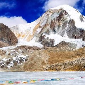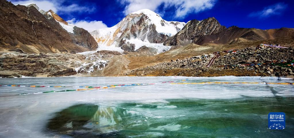 西藏拉萨市尼木县境内的琼穆岗嘎峰海拔7048米,是念青唐古拉山脉南端最后一座高峰。琼穆岗嘎冰川气势恢宏,冰臼湖群点缀其间,湖水结冰后呈现出梦幻般的色彩,恍若仙境。