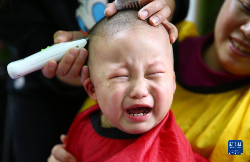当日是农历二月初二,许多家长带着孩子“剃龙头”,祈求孩子在新的一年健康成长。
