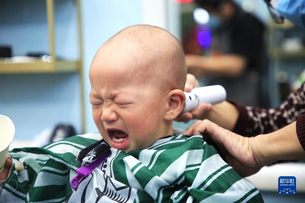 当日是农历二月初二,许多家长带着孩子“剃龙头”,祈求孩子在新一年健康成长。