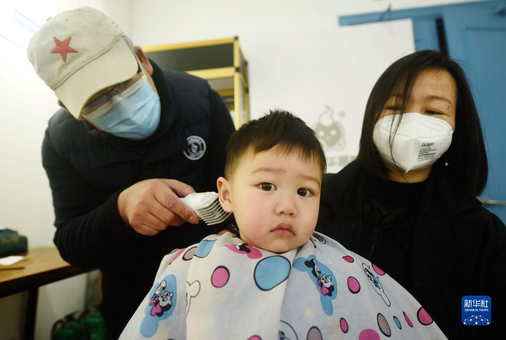 当日是农历二月初二,许多家长带着孩子“剃龙头”,祈求孩子在新的一年健康成长。