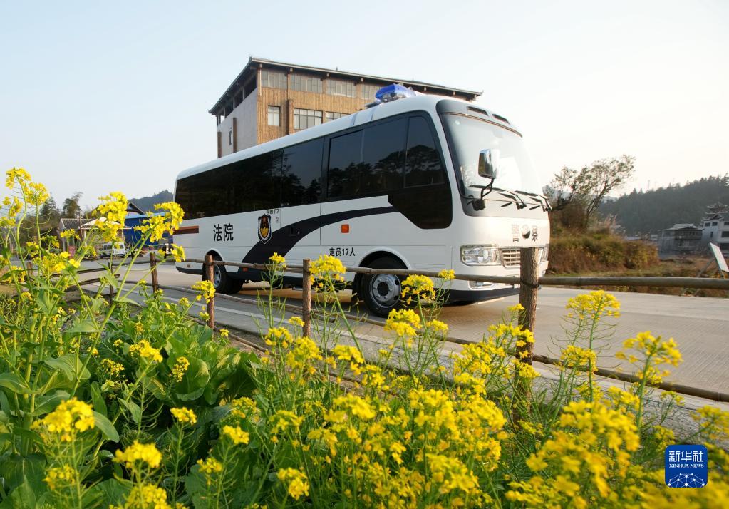 2月20日,巡回审判车行驶在柳州市融水苗族自治县乡村道路上。