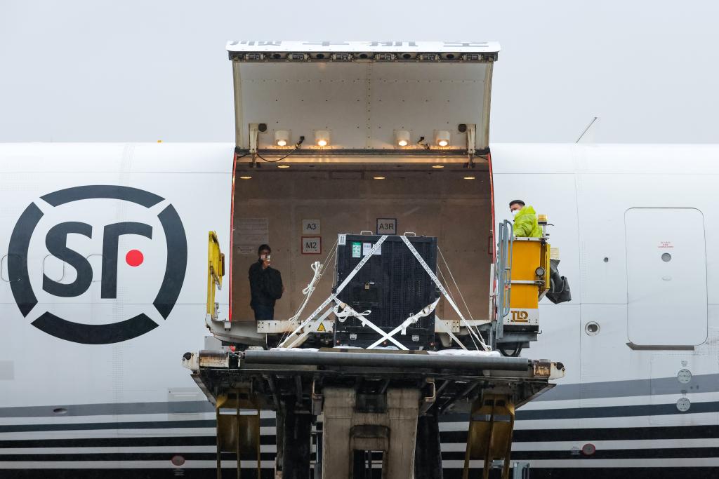 2月21日,工作人员利用大型机械在土耳其哈塔伊省清理废墟。