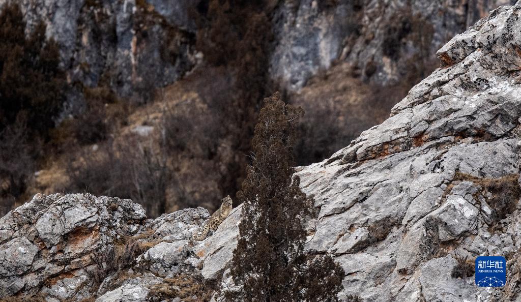 2月21日,在青海省玉树藏族自治州杂多县昂赛乡境内的昂赛大峡谷内,一只雪豹正在休息。