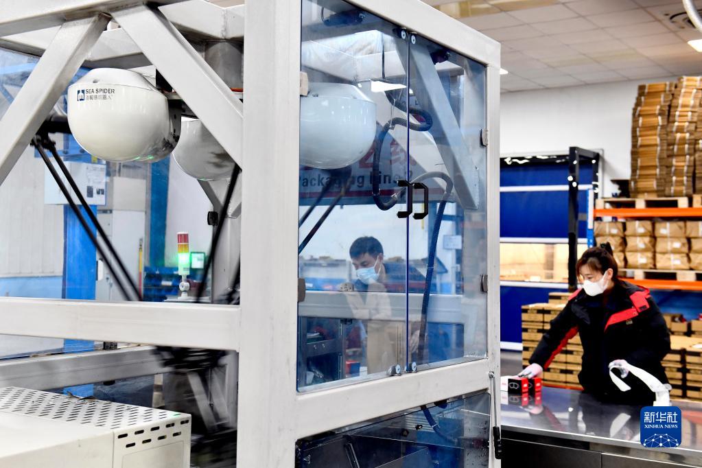 2月22日,在山东金麒麟股份有限公司,工业机器人包装刹车片产品。