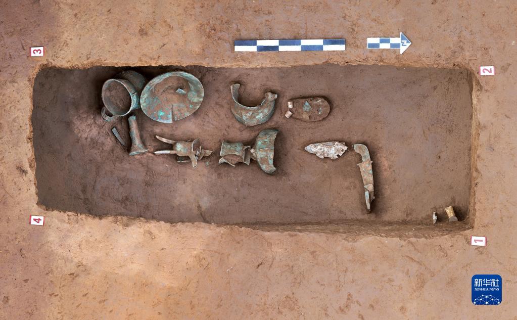 殷墟东围沟内祭祀坑K23上层发掘情况(资料照片)。