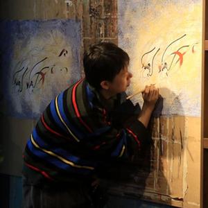 2月22日,在敦煌小镇鸣沙书院,艺术工作者张杰龙(左)指导学员临摹敦煌壁画。