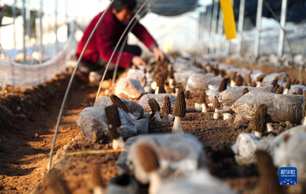 近日,在山东省成武县,羊肚菌陆续达到成熟收获标准。当地根据市场需求,发展羊肚菌产业,带动村民就业增收。