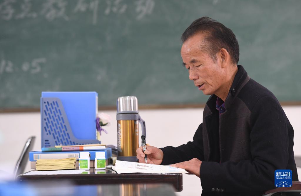在广西宾阳县王灵镇中心学校七新教学点,王英红老师在备课(2月22日摄)。