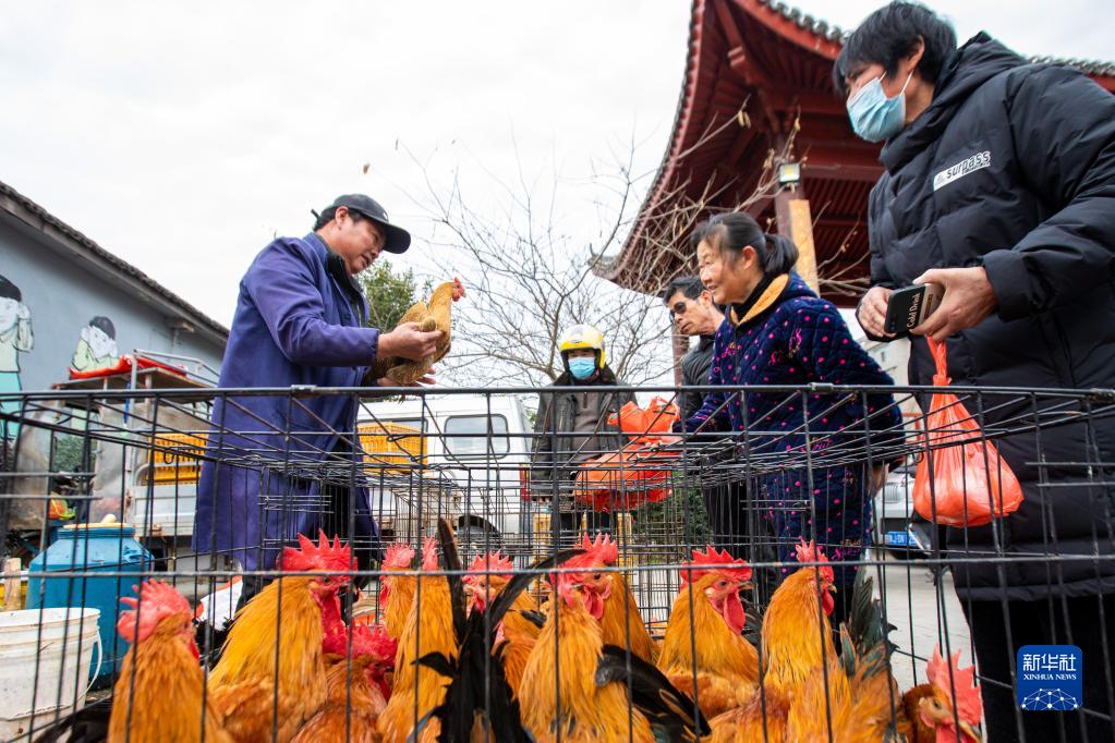 2月23日,在浙江省温岭市石桥头镇石桥新村,人们趁着赶集日来到集市选购。