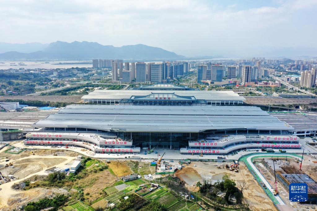 2月21日拍摄的新建福厦铁路福州南站站房扩建工程(无人机照片)。