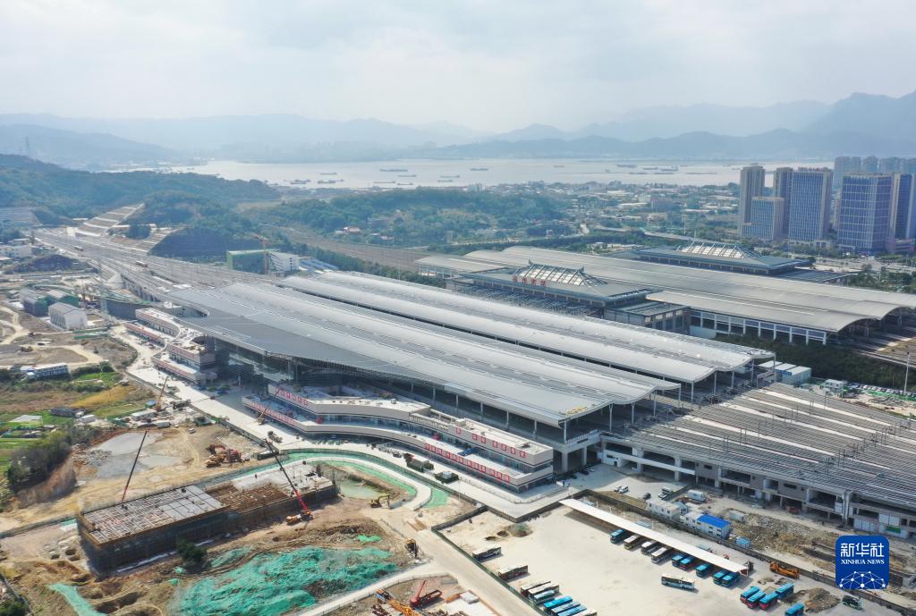 2月21日拍摄的新建福厦铁路福州南站站房扩建工程(无人机照片)。