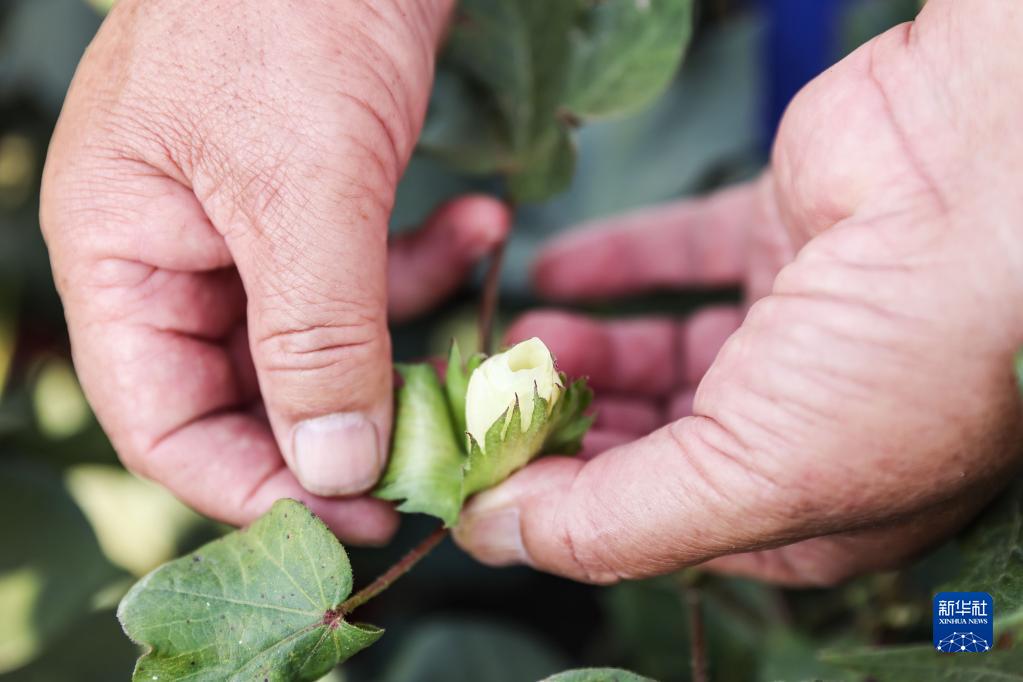 2月23日,在三亚的国家南繁科研育种基地里,棉花育种专家赵国忠在棉田里忙碌。
