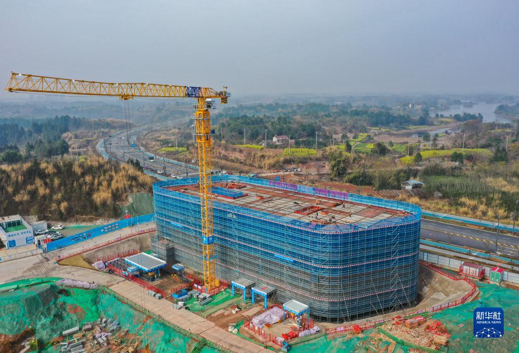 这是2月24日在成都东部新区拍摄的四川大学华西东部医院项目现代国际急诊急救中心1号楼(无人机照片)。