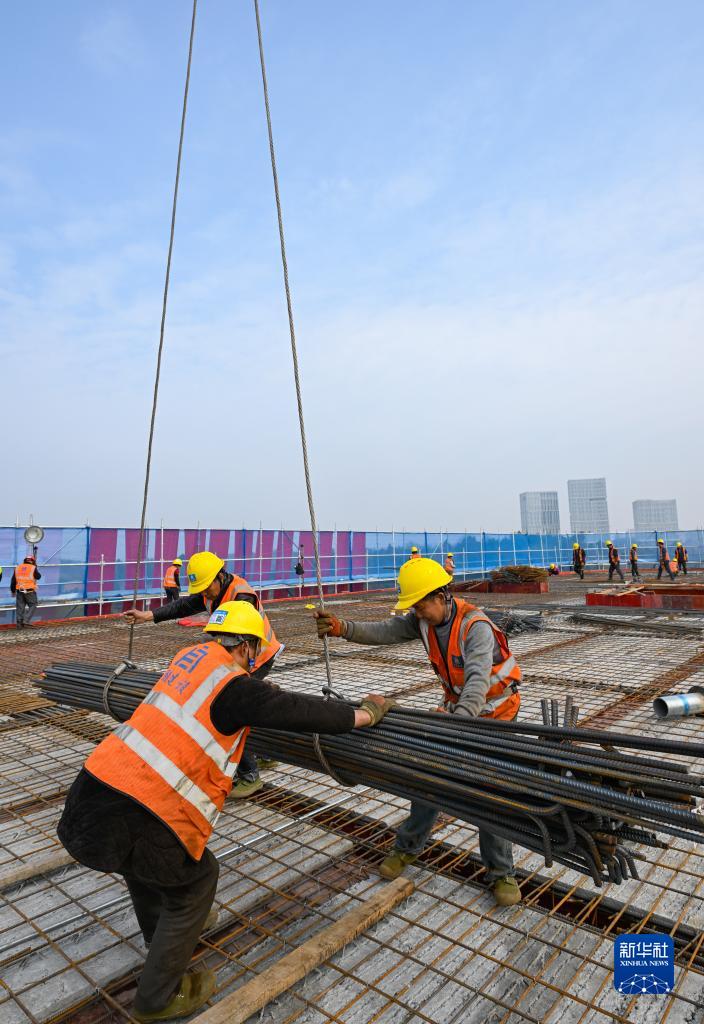 2月24日,在位于成都东部新区的四川大学华西东部医院项目建设现场,工人在进行封顶施工作业。