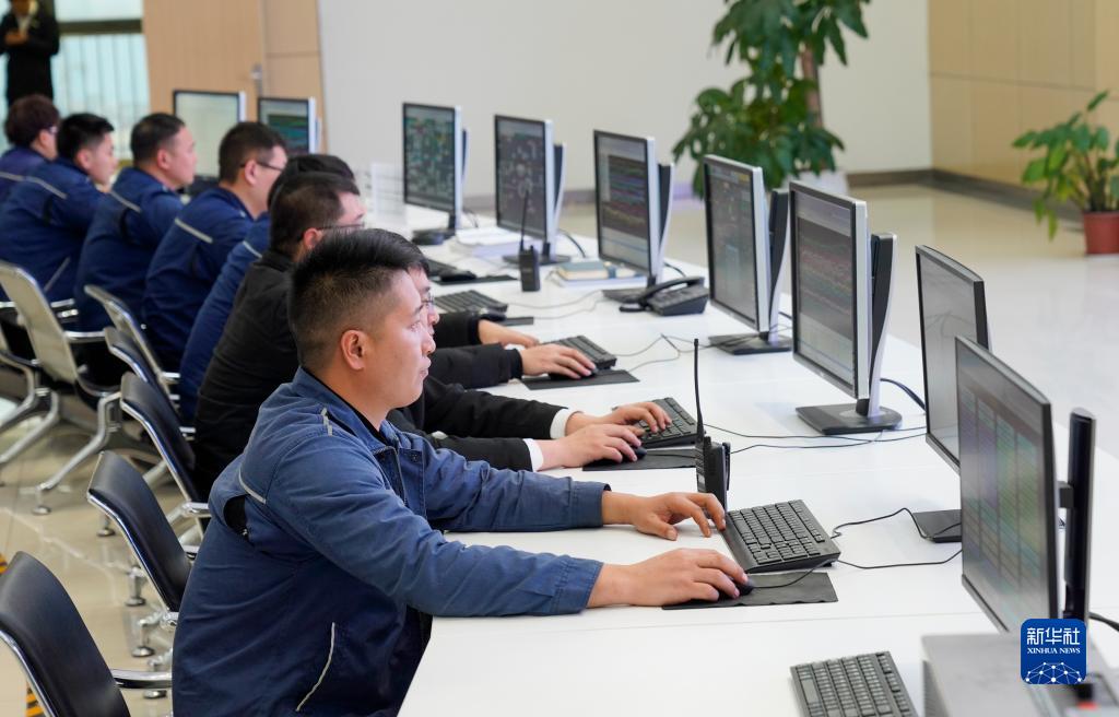 2月16日,在重庆万凯新材料科技有限公司中央控制室,技术人员利用智能化工业控制设备监控PET高分子新材料生产情况。