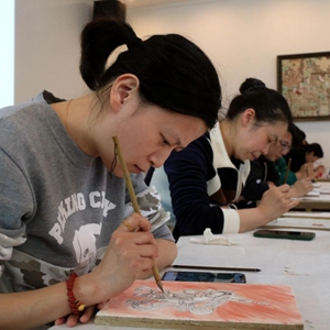 近年来,甘肃省敦煌研究院依托敦煌石窟资源和学术资源,打造“莫高学堂”研学品牌,结合敦煌壁画的结构、岩彩、图案等内容和元素,研发了“莫高梦·泥胚典藏”、“遇见敦煌·色彩”等10余个独具特色的研学课程,传承弘扬敦煌文化,推动文旅产业融合发展,让游客在旅游参观同时进一步体验敦煌文化。莫高学堂自2019年创办以来,累计有5万余人次参加敦煌文化研学体验。新华社发(张晓亮 摄)