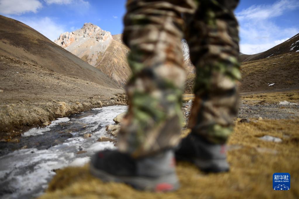 2月22日,更求曲朋在昂赛大峡谷内巡护途中驻足。