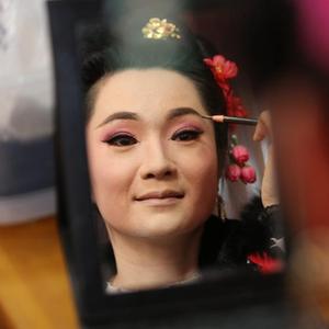2月24日,戏曲演员在临沂市沂南县依汶镇东依汶村为村民演出吕剧《喝面叶》。