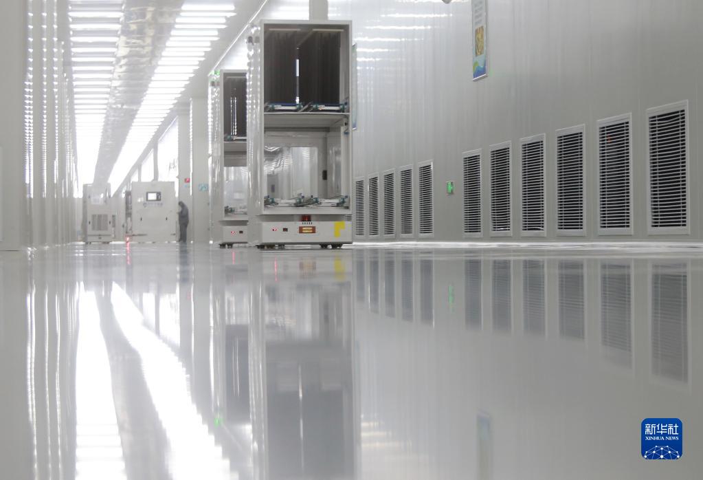 2月24日,在江苏省高邮经济开发区的一家半导体制造企业的智能化车间内,智能机器人在生产线上搬运产品。