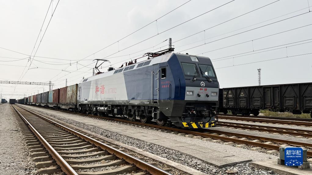 2月25日,在广西钦州港东站,满载货物的铁海联运班列鸣笛出发。