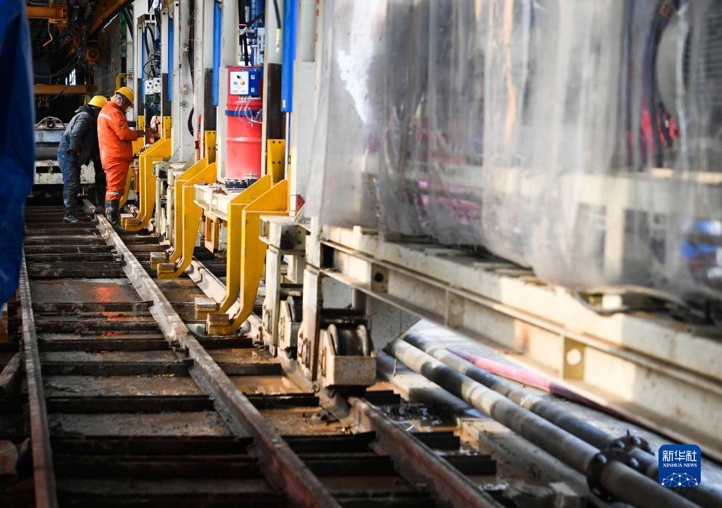 2月24日,中铁十二局工人在位于西安市长安区的陕西引汉济渭工程少陵塬隧洞施工现场工作。