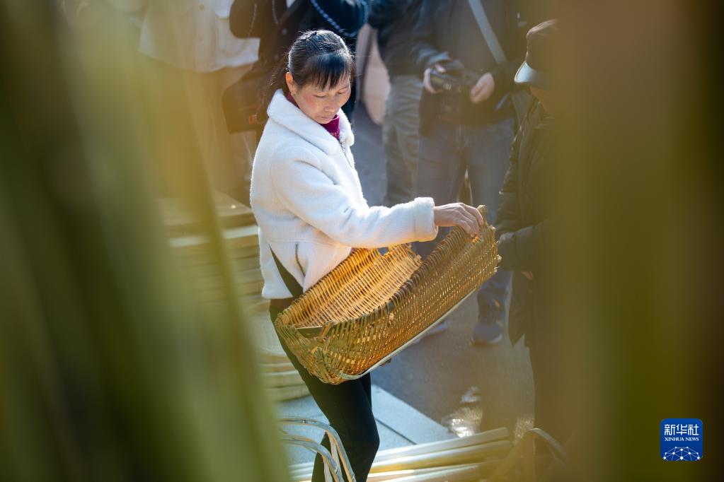 2月25日,人们在武夷山“柴头会”上选购传统竹制农具。