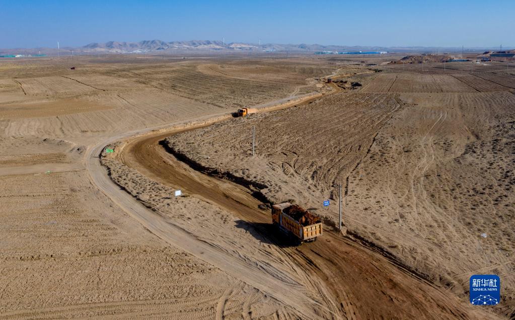 这是2月24日拍摄的宁夏同心县韦州镇现代高效节水农业项目施工现场(无人机照片)。