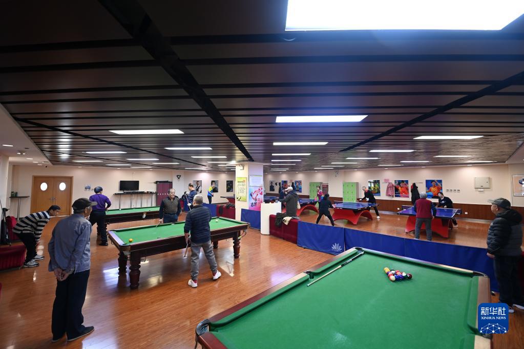 在中新天津生态城第三社区中心娱乐活动区,居民在休闲运动(2月24日摄)。