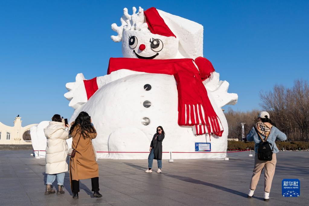 当日17时,第35届中国·哈尔滨太阳岛国际雪雕艺术博览会停止展出,在开园最后一天,不少游客前来观赏游玩。