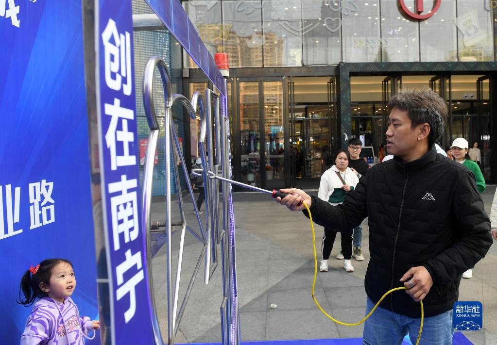 当日,广西南宁市举办“邕城创业行”创业展示交流活动,汇集南宁市第七届创业大赛优质项目及高校毕业生第一次优质创业项目参展,项目涵盖新农业、新媒体、文创、数字经济、大健康等领域,为创业者搭建平台,激发广大市民创业热情。