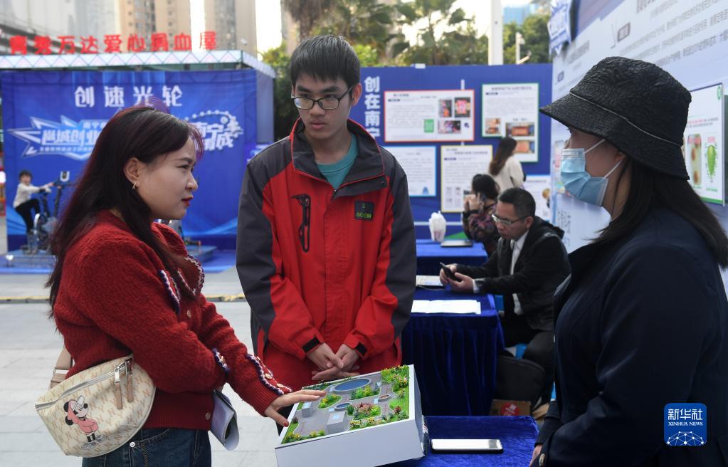 当日,广西南宁市举办“邕城创业行”创业展示交流活动,汇集南宁市第七届创业大赛优质项目及高校毕业生第一次优质创业项目参展,项目涵盖新农业、新媒体、文创、数字经济、大健康等领域,为创业者搭建平台,激发广大市民创业热情。