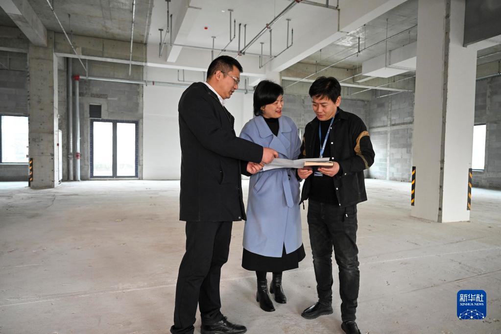 在天津中关村医疗器械园,张晓凤(右)与同事现场办公(2月23日摄)。今年42岁的张晓凤曾在北京中关村医疗器械园工作,2019年落户到天津宝坻京津中关村科技城,并参与天津中关村医疗器械园的园区建设管理工作。张晓凤希望公司业绩越来越好,每个人工作顺利,孩子学业有成。