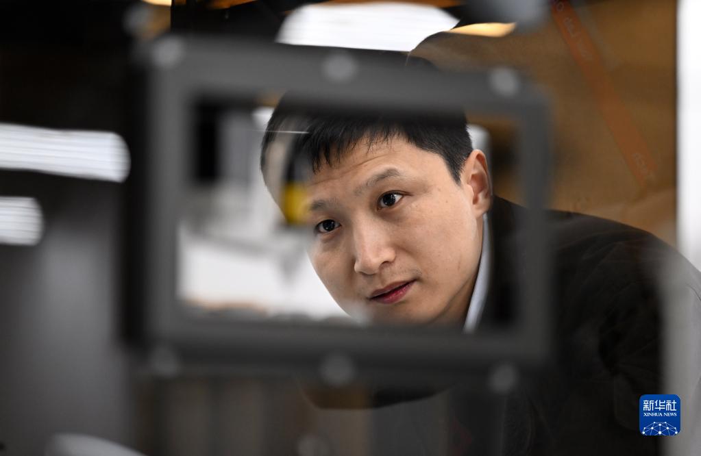 在莱伯泰科(天津)科技有限公司,刘学在车间查看仪器设备(2月23日摄)。今年37岁的刘学曾在北京工作多年。2019年,他和妻子于丽新一起被派到天津宝坻京津中关村科技城,参与分公司的设立。现在他们一家人已经在天津落户。于丽新希望家人健康平安、孩子学业有成。刘学说,妻子的愿望就是他的愿望。