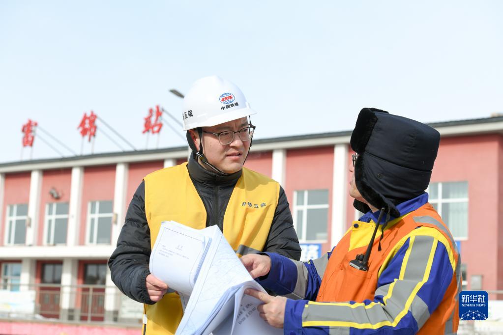 2月25日,黄腾(左)在富锦火车站进行运量调查作业。