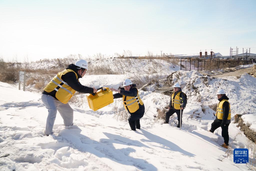 2月25日,黄腾(左二)与同事在佳抚铁路佳富段进行外业调查。