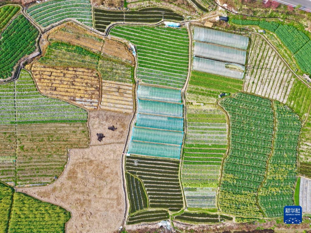 春耕时节,在福建省福州市乡村山岭间,一块块形状各异、五彩斑斓的田地犹如大地上的拼图,呈现别样的春耕画卷。