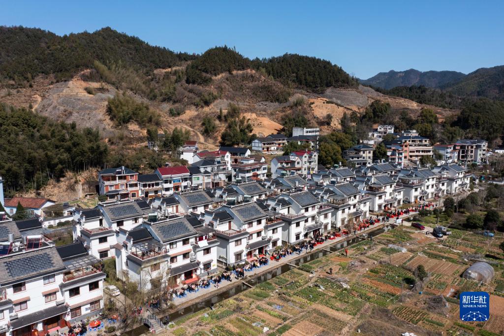 2月26日空中俯瞰莲花镇戴家新村的百家宴(无人机照片)。
