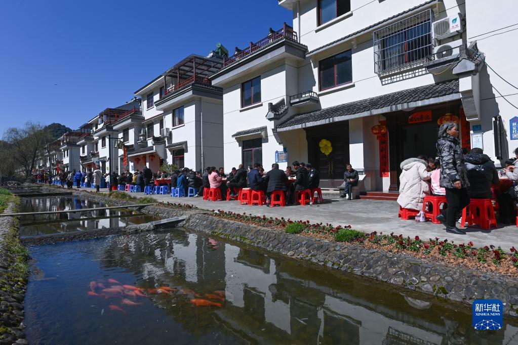 当日,上千名游客来到浙江省建德市莲花镇戴家新村民宿一条街,参加乡村特色百家宴,感受新农村“舌尖上的幸福”。本次乡村百家宴也标志着2023建德市莲花镇乡村民俗旅游文化节正式开启。