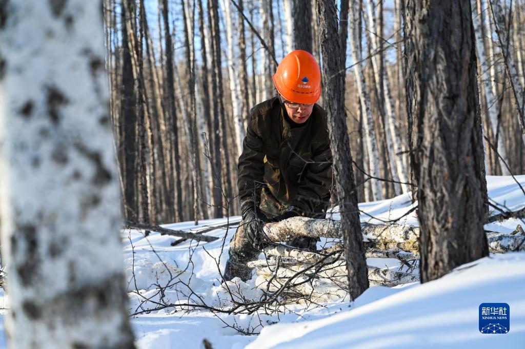 2月23日,乌龙岱林场402工队职工石祥龙在林区作业。